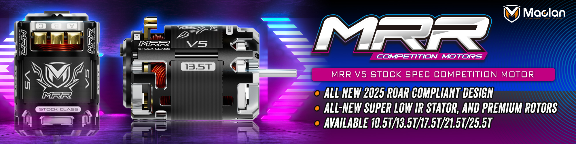 Maclan Racing proudly presents the MRR V5 Stock Spec Competition Motor Series, our next-generation platform developed under the latest 2025 ROAR rules. Every detail of the V5 has been refined through extensive engineering and race testing to deliver stronger torque, smoother control, and improved efficiency for today’s demanding RC racers.